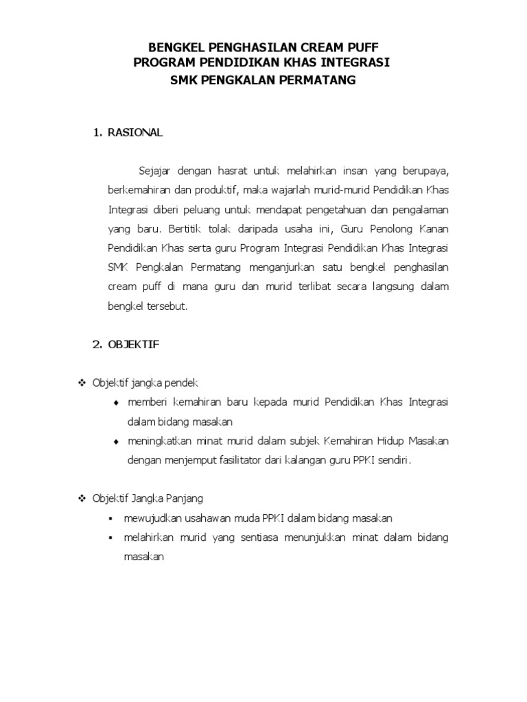 Kertas Kerja Kursus Penghasilan Cream Puff Pdf